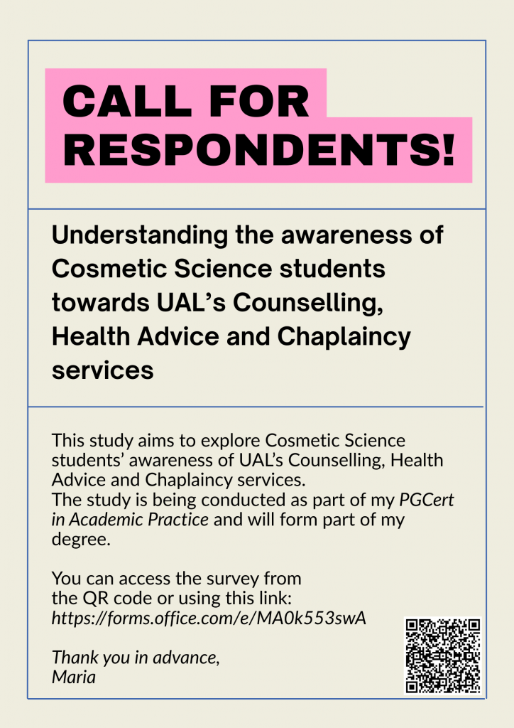 Reflecting on my own positionality has been central to this process. I am a cisgender, heterosexual woman from Cyprus who moved to the UK fourteen years ago to study and subsequently remained in academia. Teaching cosmetic science within an arts institution, places me at an intersection of disciplinary cultures, where scientific authority, creative inquiry, and critical pedagogy coexist, sometimes uneasily. This positioning has shaped my awareness of how scientific curricula can marginalise ethical and social questions, particularly when aligned closely with industry priorities.